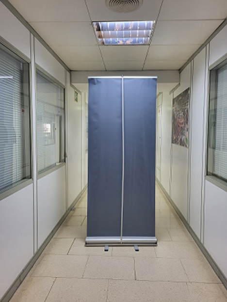 Los pósters, deberán presentarse en roll-up, aportado por los propios autores. El tamaño del mismo será de 1m. de ancho x 2 m. de alto y con orientación vertical (no se admitirán posters que no cumplan con estos requisitos, se adjunta foto).