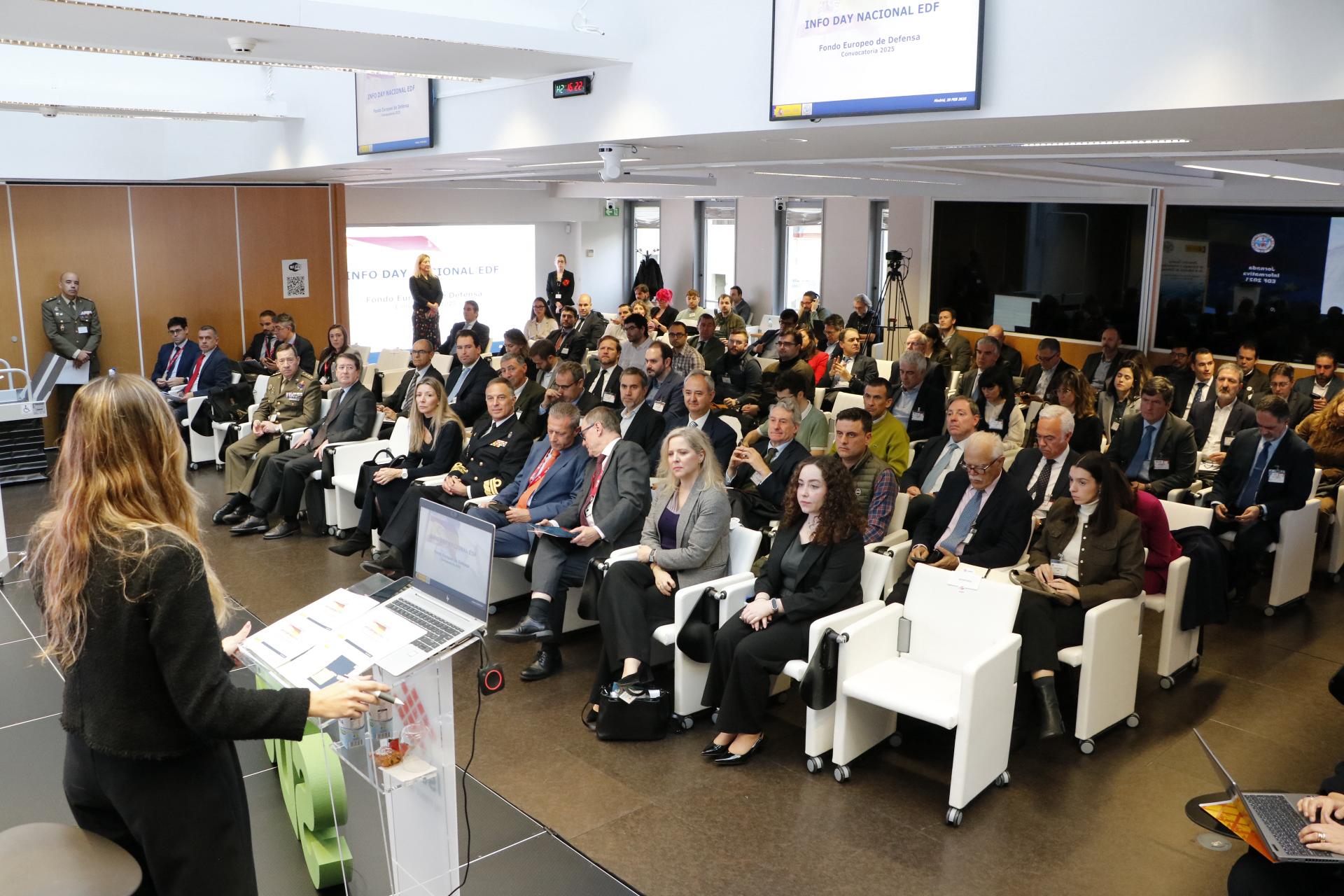 El objetivo de la jornada era difundir la información del programa de trabajo EDF publicado para este año. Durante la presentación, se significó el compromiso absoluto de la Secretaría de Estado de Defensa en general y de la DIGEID en particular, en el apoyo a la industria española de defensa, impulsando, en este caso, la I+D+i colaborativa en el ámbito europeo.